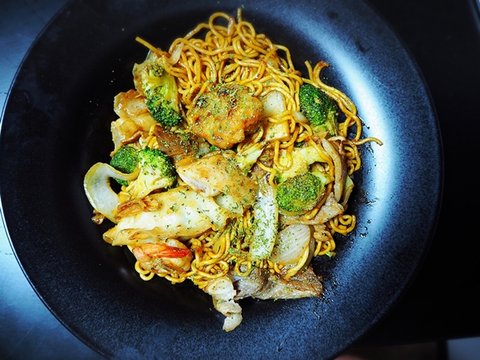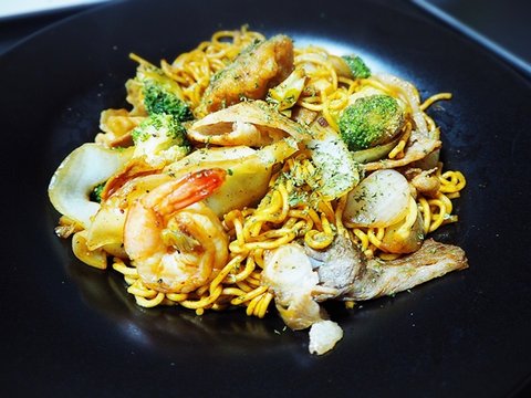 일본에서 사온 UFO야끼소바하나가 남았길래, 각종 채소들을 넣고 볶아 먹었습니다. UFO야끼소바만도 맛있는데 소스가 좀 짜더라구요, 그래서 채소나 밥이랑 같이 먹으면 간이 딱 맞더라구요, 비X고 새우왕교자와 가라아게, 브로콜리, 양파등을 넣었습니다.