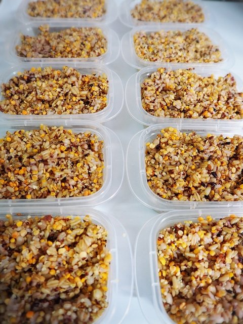 귀리의 식감을 좋아해서 귀리를 많이 넣고, 렌팅콩과 치아씨드는 밥지을때 넣으면 뭉개져서 따로 찐담에 마지막에 섞어주었습니다.