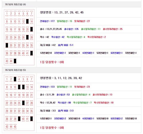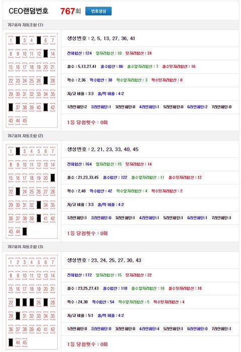 로또 767회 예상번호 자동생성 결과 (로또 무료 사이트)