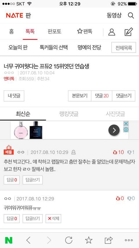 나한테 와 반전이라면서 춤도잘추고 머리까지 좋아서 놀랬다고 하고