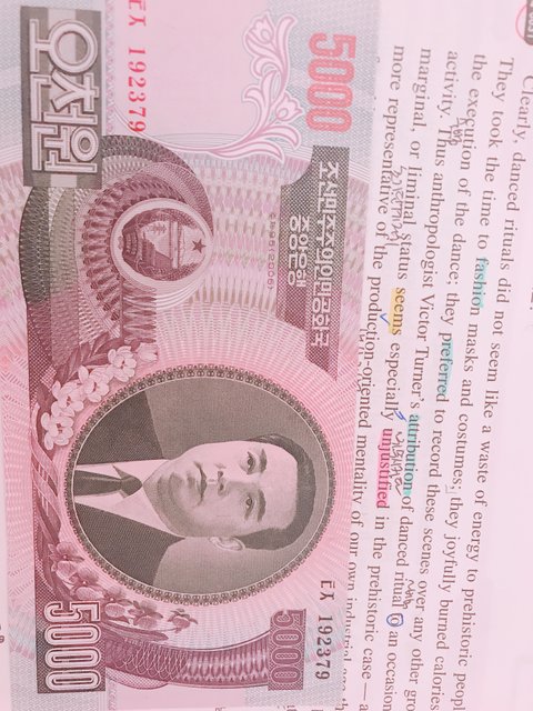 저 북한돈은 중국 여행갔을 때 이만원 주고 산 거야 ㅋㅋ