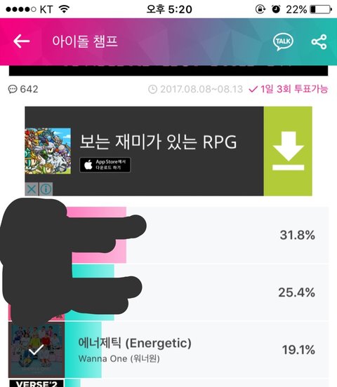 그리고 인1가도 아1지톡 하나만 앱 다운받으면 할 수 있거든ㅠㅠ 지금 우리 투표 화력 엄청 딸려...