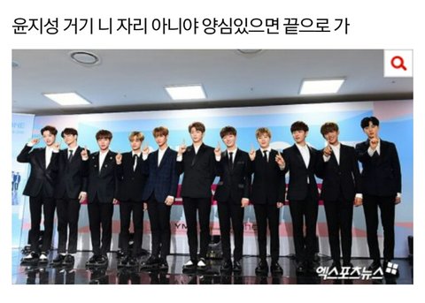 애들아 진짜 제발 윤지성 그만 까면 안돼? 프듀도 끝났고 데뷔도 했어. 열심히 했으니까 데뷔를 한거고, 데뷔를 했으면 '축하한다,고생했다, 꽃길만 걸어라.' 이런말이 먼저 아니야? 윤지성이 센터에 조금이라도 가까이 있으면 제일끝으로 가라하고, 댓글에 윤지성 못생기게 나온 사진올려서 "송중기밀어낼듯" 뭐 이런글 올리고 그만좀해 부탁좀하자 제발....