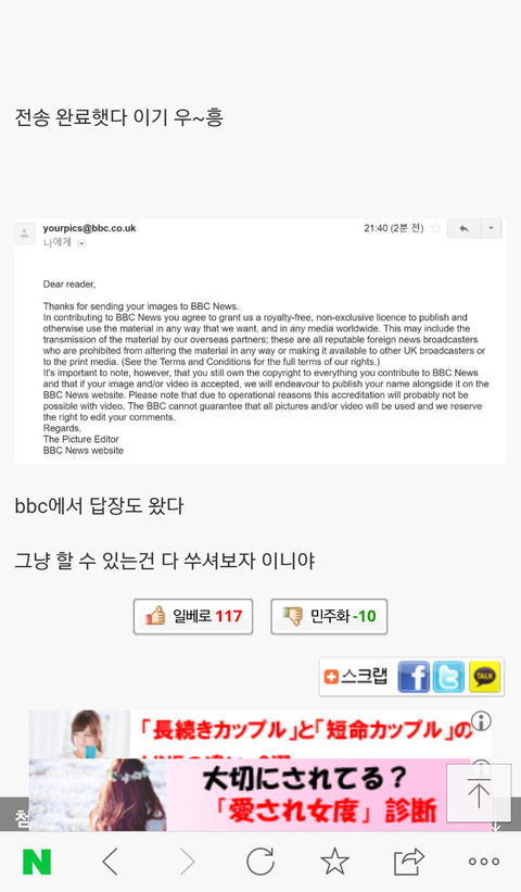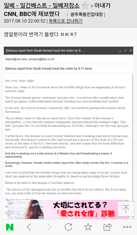 일베가 bbc랑 cnn에다가 갓건배 신고함