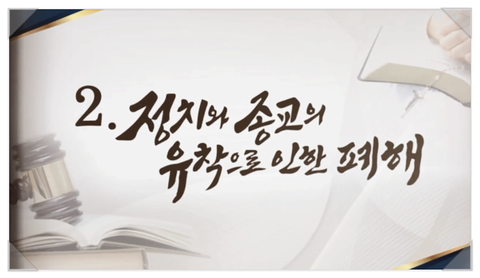 오늘도 이어서 정치와 종교의 유착으로 인한 피해에 대한 내용을 낱낱이 전해드리겠습니다.