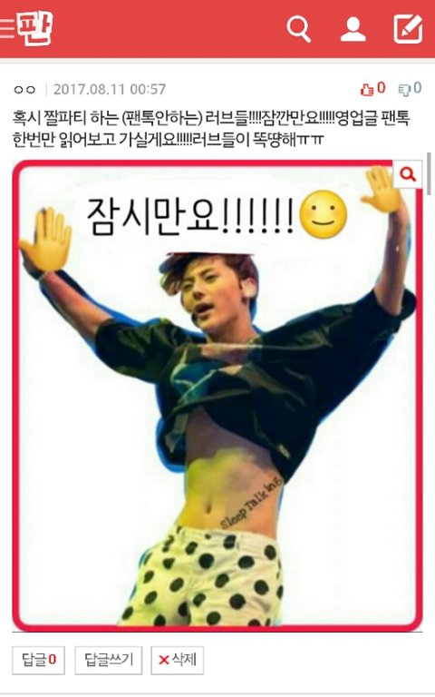 납치를 하진 말자고 하는데 짤파티 너어어어무 심각해져서 일단 이 댓글 하나 달았는데 안될까? 보니까 팬톡안하는 러브들 많은거 같아서..