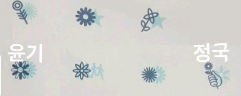 윤기 위에 활모양같은 꽃은 호석이 호석이 그림자에 비추는 꽉찬꽃은 지민이 지민이 로고뒤에 비춰지는 꽃은 남준이 준이뒤에 같은 별모양을 하고있는데 태형 같음