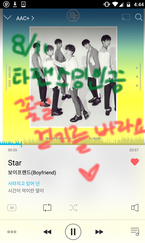 안녕하세요:) 타팬입니다! 지난번에 ㅇㅌ에서 신곡 나온다는 글 보고 말씀드렸던대로 스밍인증하러 왔습니다. 보이프렌드분들