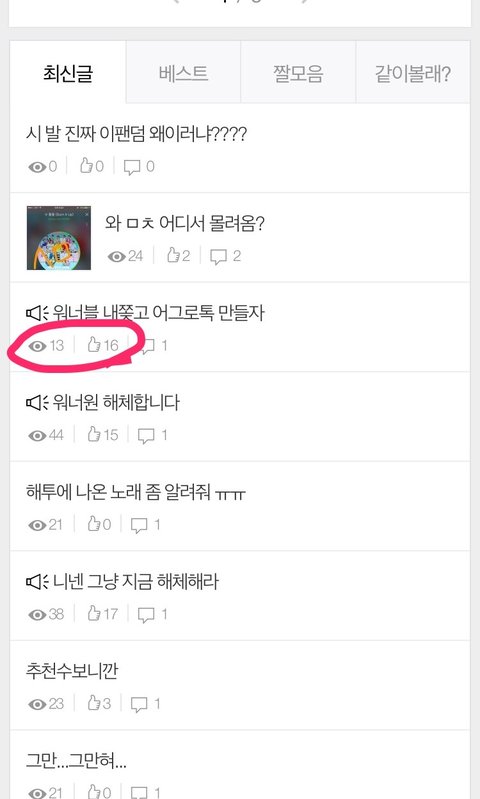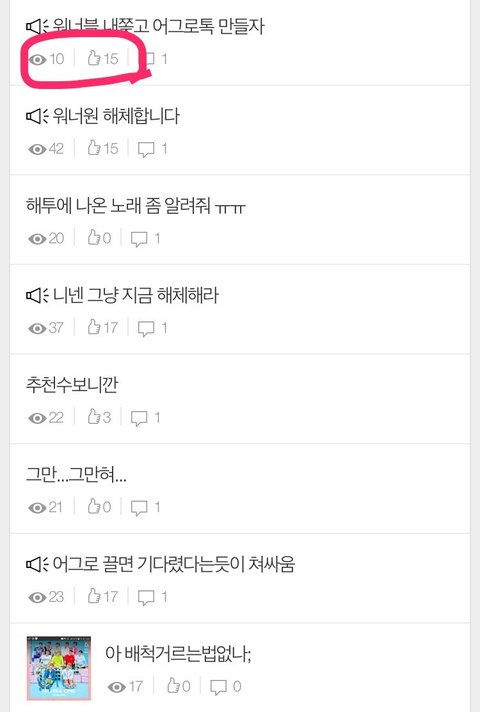 조회수/추천수 안맞음 조작. 밑에 다른 글들 다 이랬음.