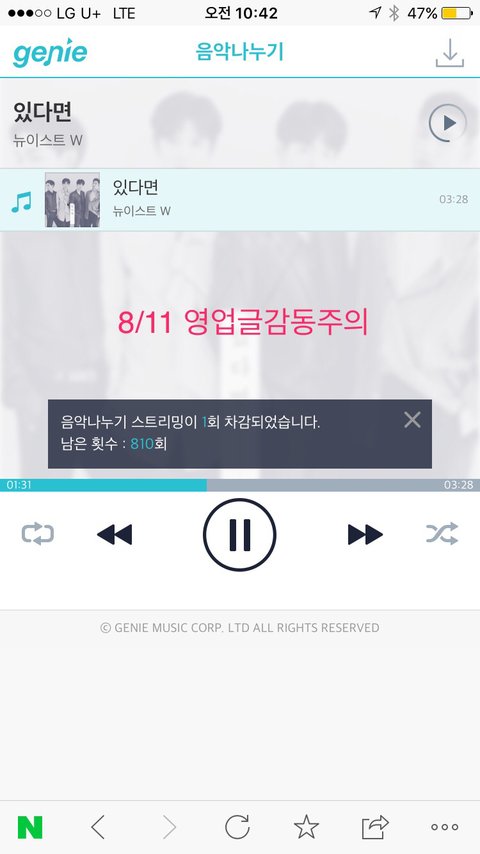 ㅁㄹ은 공기기 스밍중이고 이 폰으론 음악나누미 돌리는 중!