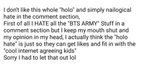 외국에서 홀로 어쩌고가 유행하나본데 그런 물건 가지고 asmr 하는 영상 댓글이거든?? 근데 뜬금없이 bts army가 왜 나오고 뭔소린지 모르게따.. 왜 홀로가 욕먹는지도 모르겠구 댓글엔 help가 엄청 많고