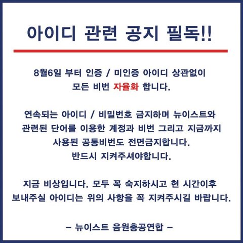 ✔️여러분이 아이디를 많이 보내주셔서 인증아이디가 많이 들어왔지만 2시 총공 후 현재 인증아이디가 92건밖에 남지 않아 남은 총공을 진행하기가 어렵습니다 ㅠㅠ 인증아이디 많이 보내주시길 부탁드리겠습니다