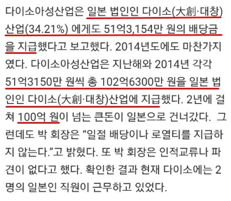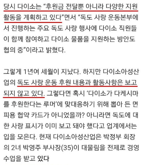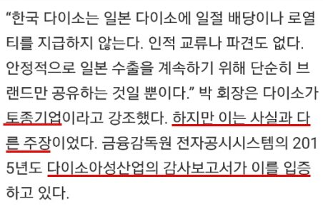 여기서 일본 다이소(일본 백엔샵 체인스토어)는 우익단체 후원