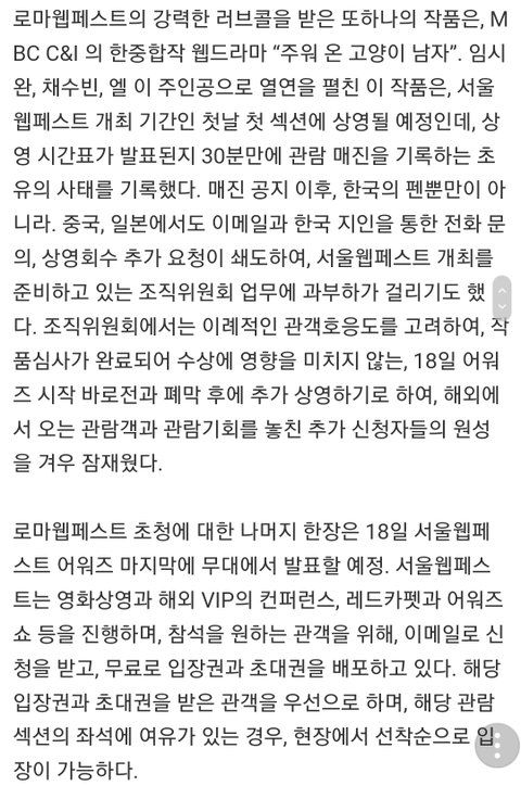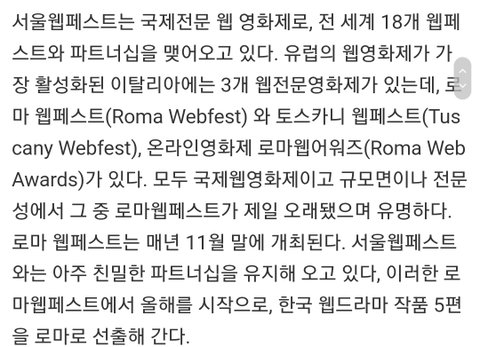 로마 웹페스트에 초청작으로 진출할수도 있대.