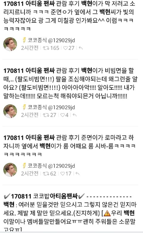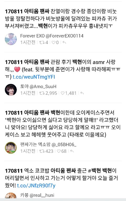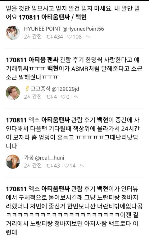 170811 아티움 팬싸 관람 후기 백현이의 asmr 사랑해.,,❤ㅋㅋ