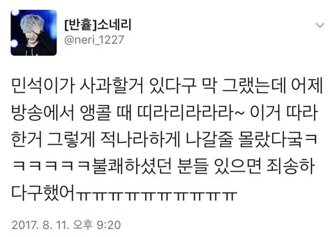 아니 민석아!! 그게 얼마나 대박이었는데 무슨 사과야ㅠㅠㅠ