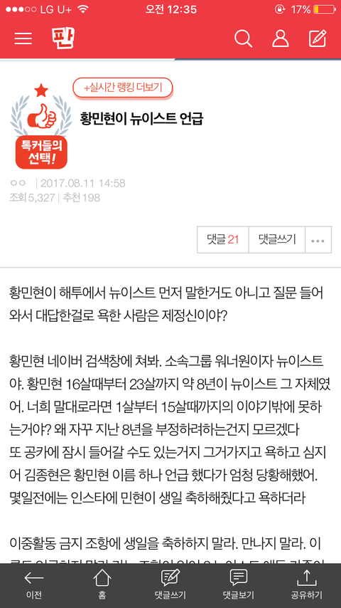 이것도 팬톡 유도 댓도 베플됐는데 댓글에 다 민현이 글 너무 많다 그래서.. 신고하는게 맞나? 우선 링크야