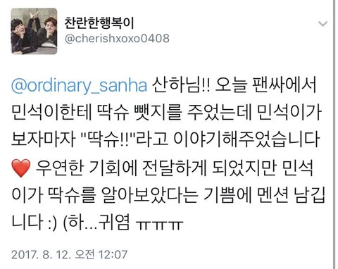 대박!! 시우민도 딱슈를 알고 있어!!!!!