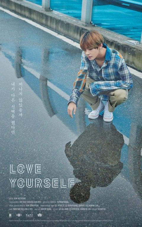 다 무언가 쳐다보고 있는데 뷔만 자신을 보고있고 글씨두 다 오른쪽에서 왼쪽으로 읽는건데 뷔만 왼쪽에서 오른쪽으로 읽는거다