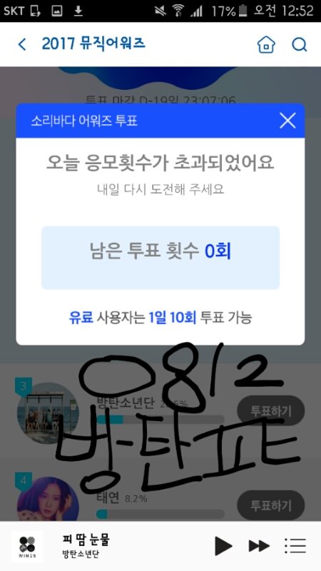 열투표르~~~~///~~~~//신한류 인기상 1위를 향해 달리자~~~~~스밍은 공기계요~~~~~~