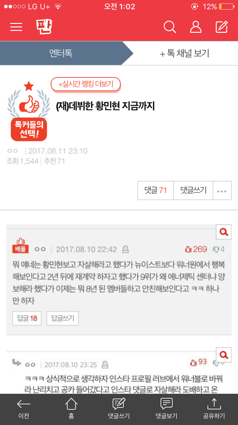 진짜 이쯤되면 ㅇㅌ가 민현이 안티; 이 글 다른멤버팬분이 써주셨다는데 ㅌㅅ이야 ㅠㅠ 내리자