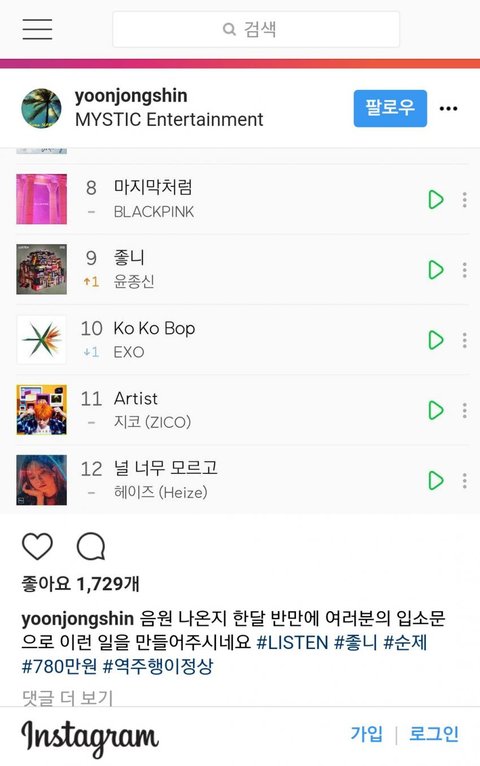 멜론 10위권안에 들어가서 인증샷을 올렸는데....