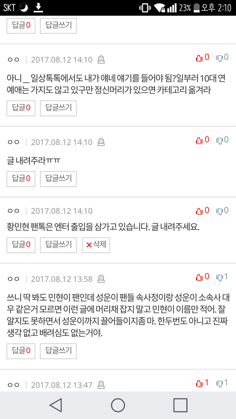 글 내용은 민현이랑 ㅇㄴㅇ ㅎㅅㅇ 관련 내용인데 좋은 내용 아니야