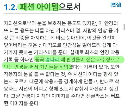 - 죄인을 위압할때 썼다는 선글라스. 후크선장은 아이들을 잡아와 죄인 취급하며 악어의 먹이로 주려고 했어. 해찬=후크선장.