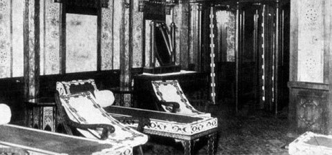 -실제 타이타닉 호의 내부. 배의 벽은 화려한 벽지와 나무장식으로 장식 되어있어. 해찬이 티저 배경=후크선장의 배.