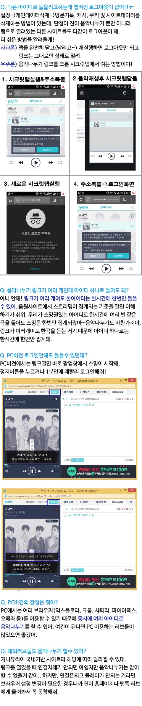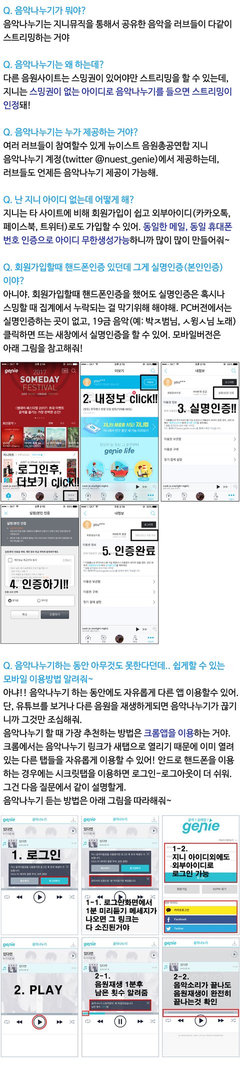 진이 음악나누기 방법 및 주의사항