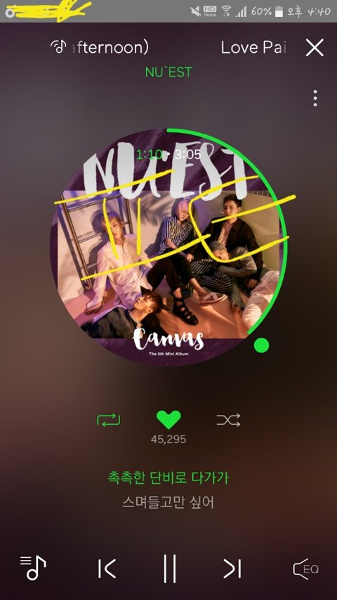 그리고 이것도 다했으면 지니 음악 나누기 듣자!! 나는 카톡 트위터 페북 아이디 다 사용해서 한시간마다 3번씩 들어!! 우리 열스밍해서 뉴이스트 꽃길만 걷게 해주자 화이팅♡♡♡