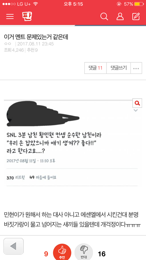 민현 팬이 글쓴거 같은데ㅠㅠ 혹시 팬톡 미녀단 아니지? 신고해줘 그리구 팬톡 유도댓에 추천 꾸욱!