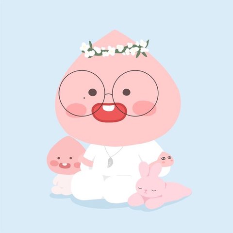 큰어피치가 애기 어피치 안고있고 팔에 매달고있음