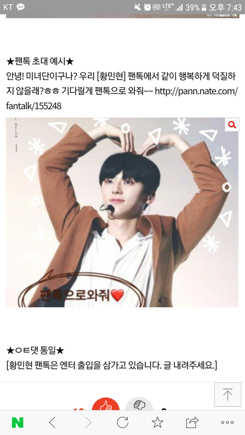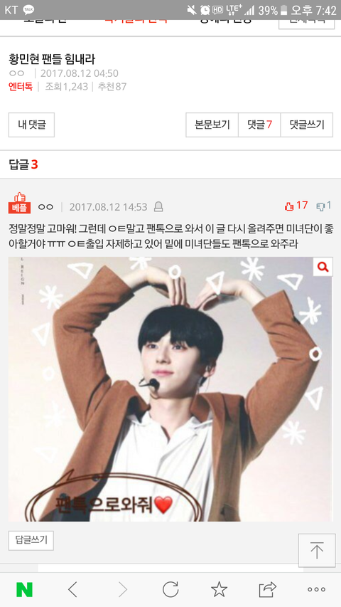 ㅇㅌㅌ에 이런 댓글이 보여서 여기 팬톡 들어오게 됐어