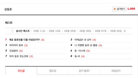 나 동호공쥬님 좋아해서 짤좀 가져가려고 즐겨찾기 했는데 1000번째 팬이당!!!!
