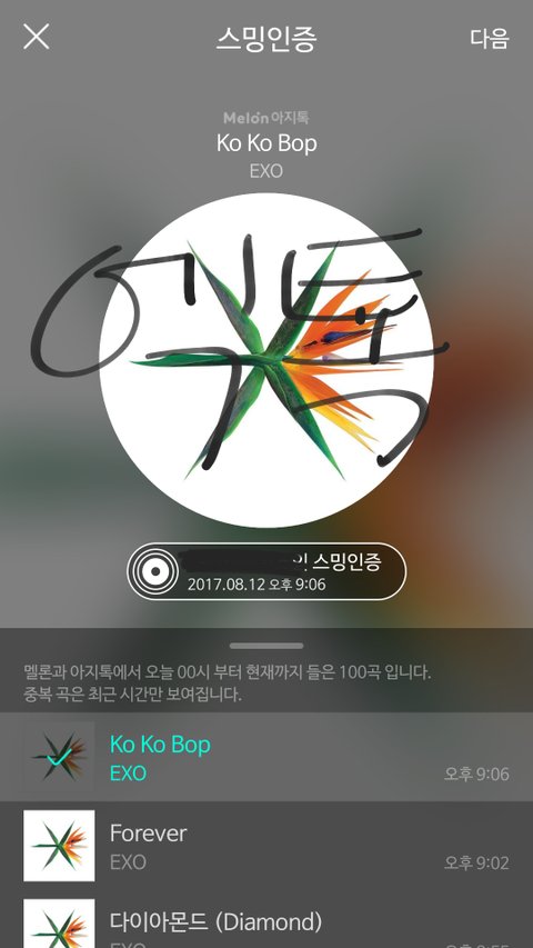 리뷰창에서 스밍잘하는 엑소엘한명 뮤직DNA들어가고 캡쳐하면 끝이네 이것도 문제있는듯