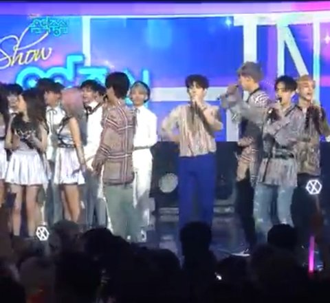 먼저 여기서 백현은 노래를 부르다 옆으로 몸를 틀었어. 그러나 "이때" 태연과 마주보게 돼.