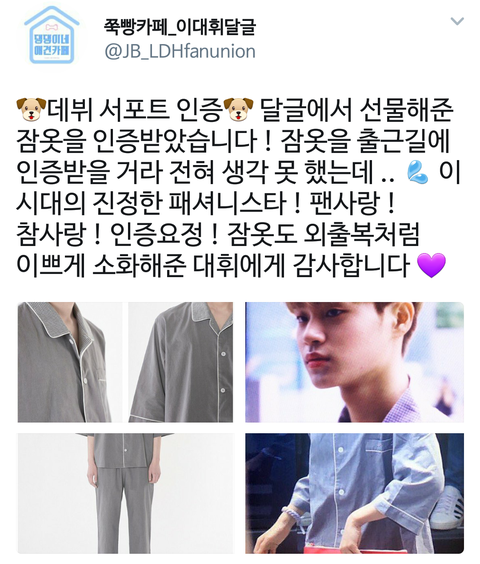 팬들이 선물하면서도 잠옷을 이렇게 인증받을 수 있을거란 생각없었을텐데 팬사랑 대단한 이대휘ㅋㅋㅋ