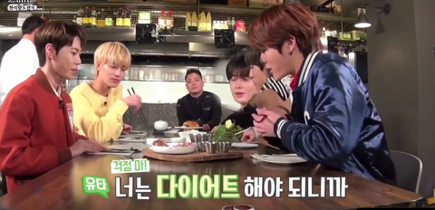 위의 같은멤버인 재현보고 너는 다이어트 해야하니까~라고 꼽주는 유타(그소리 듣는멤버는 평소에 다이어트로 스트레스 많이 받는멤버라고함)