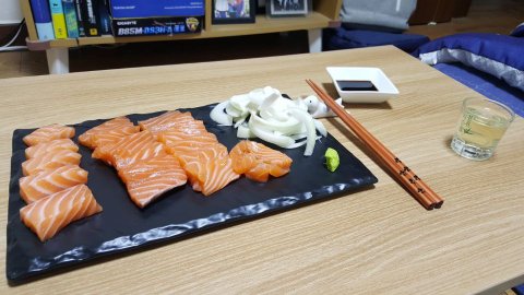 연어를 좋아해서 두툼하게 썰어 먹습니다.