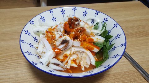 마트에서 갑오징어 싸게 팔길래 숙회를 해봅니다.