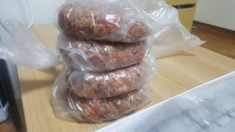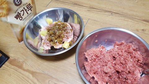 부재료 제외하고 고기만 섞어 만들었더니 묵직하니 맛이 좋습니다.