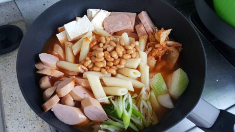 얼큰한 부대찌개는 재료를 사다가 때려붓기만 하면 되니 쉽습니다.