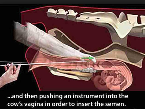 임신하고 싶어하지 않은 암소를 임신 시키기 위해서, 강간 막대를 넣어서 자궁을 자극하고 수컷 정액을 투여해서 임신을 시키려는 목적이야.