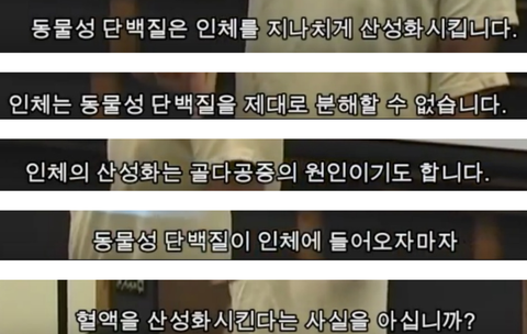 소의 젖은 동물성 식품이야. 인간의 몸은 육식동물인 사자나 호랑이보다 초식동물인 고릴라나 돼지와 훨씬 유사한 구조를 갖고 있어서 동물성 단백질을 제대로 분해 못하고 오직 그걸 분해할 수 있는 방법은 인산염을 이용하는건데