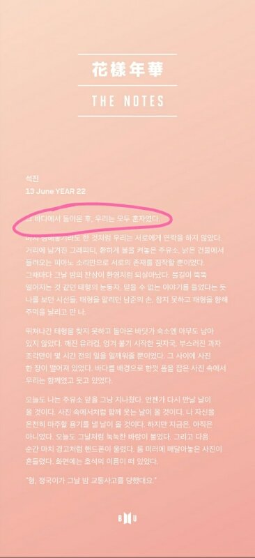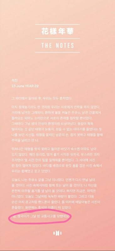 교통사고가 났었다는 것을 이제야 알려준 이유에는 정국이의 윙크가 있지 않을까? 가끔 윙크는 비밀이라는 뜻을 내포함.