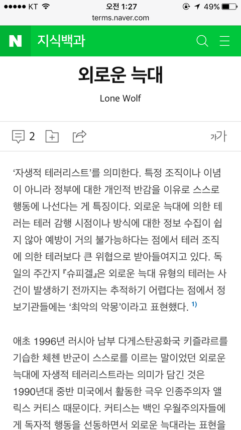 일단 외로운 늑대가 혁명 반역 이런 느낌이잖아