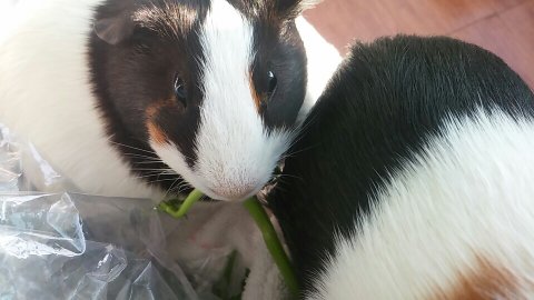 기니피그는 미나리를 좋아해요! 랑이가 미나리먹는걸 찍었어요 나중엔 미나리가 없는 빈 비닐봉지소리에도 꾸잉꾸잉하면서 무릎위로 올라와요!