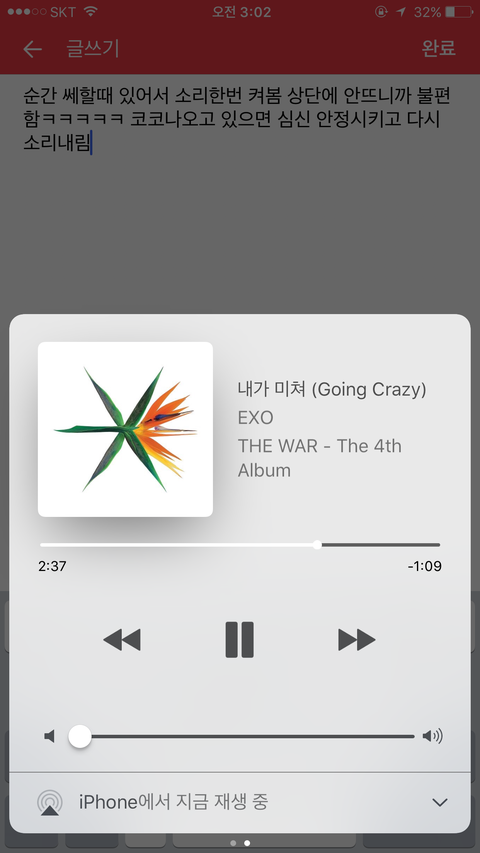 순간 쎄할때 있어서 소리한번 켜봄 상단에 안뜨니까 불편함ㅋㅋㅋㅋㅋ 코코나오고 있으면 심신 안정시키고 다시 소리내림