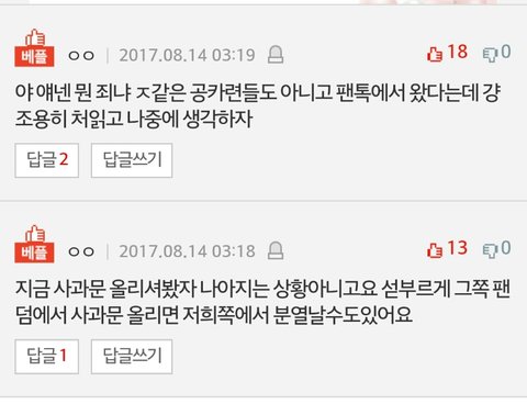 사과문 베플만 가져왔어